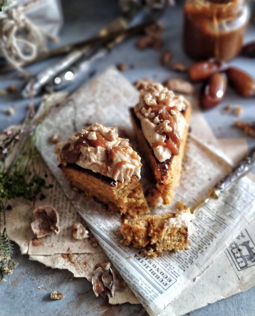 Torta di carote (senza zucchero) ai datteri con caramello salato & noci tostate